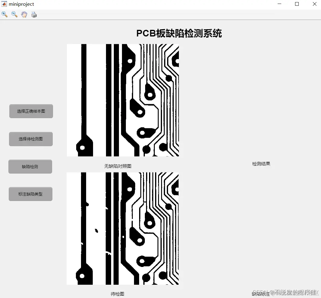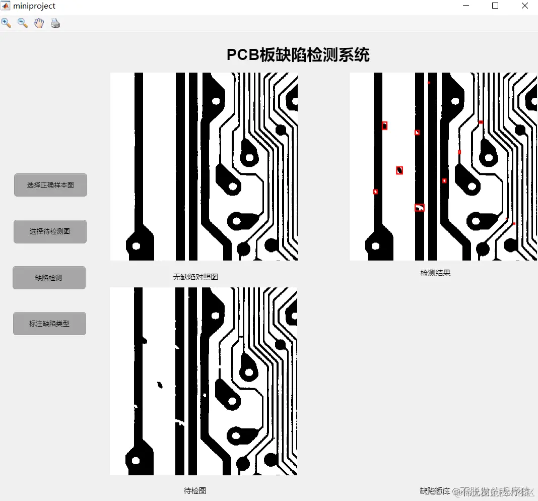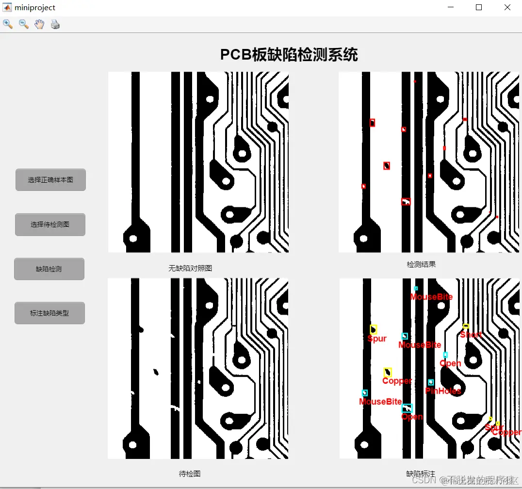 点击缺陷检测和缺陷标注完成对PCB板图像的检测,如下图所示: