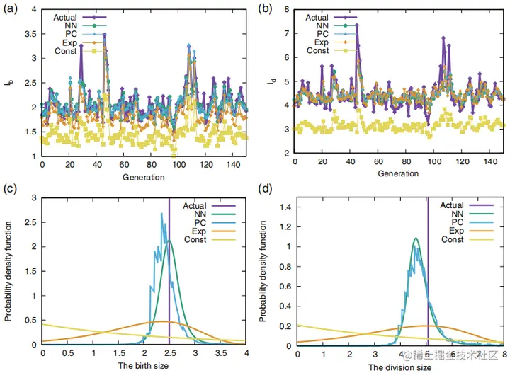 通过「灵活地表示确定性关系」和「噪声分布的函数形式」,神经网络可以有效地将历史相关的确定性因素和无法解释的噪声从给定数据中分离出来。科学家们指出,「通过使用该方法,我们表示并推断细菌与裂变酵母的——出生细胞和分裂细胞的大小分布。」