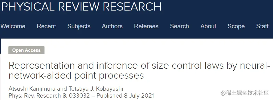 该研究以「Representation and inference of size control laws by neural-network-aided point processes」为题,发布于2021年7月8日出版的《PHYSICAL REVIEW RESEARCH》杂志。