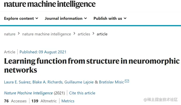 该研究以「Learning function from structure in neuromorphic networks」为题,于 8 月 9 日 发布于《Nature Machine Intelligence》杂志上。