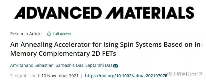 该研究以「An Annealing Accelerator for Ising Spin Systems Based on In-Memory Complementary 2D FETs」为题,发布在《Advanced Materials》上。