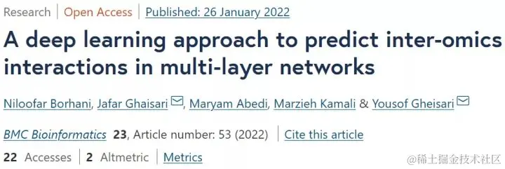 该研究以「A deep learning approach to predict inter-omics interactions in multi-layer networks」为题,于 2022 年 1 月 26 日发布在《BMC Bioinformatics》。