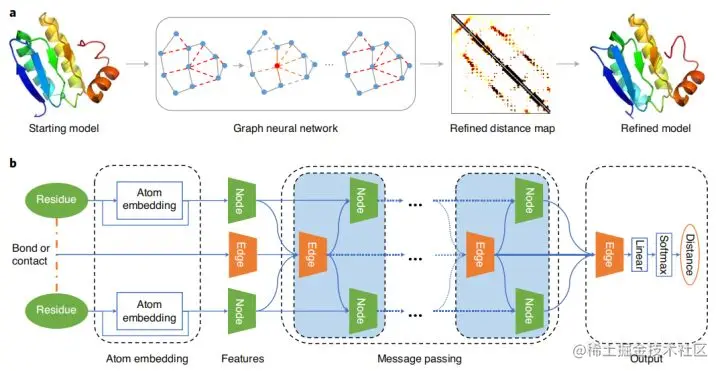 许锦波团队表示:GNNRefine 方法可以更准确地估计「现有边的距离概率分布」,但无法检测「缺失的边」;因此如果初始蛋白质模型的图形表示中有许多「错误或缺失的边」,则其性能可能会受到影响。然而,优化方法通常用于质量还可以的蛋白质模型,这些模型往往具有很大比例的正确「图边」。值得一提的是,该方法目前在 AlphaFold2 的模型优化上表现不佳。为了进一步得到高质量的蛋白质模型,除了生成更好的训练模型外,许教授团队还计划通过开发「端到端框架」来改进其方法。具体来说,他们计划将蛋白质的 MSA 作为输入。MSA 中编码的协同进化信息可以帮助 GNNRefine 更准确地预测残基间相互作用,从而导致更好的优化蛋白质模型。同时,还将研究个体蛋白质序列和 MSA的自我监督学习的实用性。目前,「原子嵌入」对于优化模型并没有太大帮助。研究人员将通过利用原子的化学背景并使用更准确的侧链原子生成训练蛋白质模型来改进它。将来,许教授团队还将使用深度学习直接预测(主链和侧链)原子的 3D 坐标,而不是残基间距离概率分布。这将避免使用能量最小化方法来构建 3D 模型,并有可能提高模型质量。研究人员还将在训练集中添加更多更高质量的 3D 蛋白质模型,以便深度学习可以学习优化高质量的蛋白质模型。