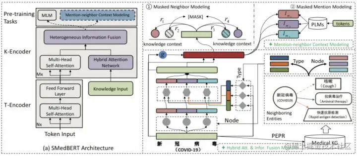 在 SMedBERT 中,mention-neighbor hybrid attention 用来学习异构实体信息,将实体类型的语义表示注入到同构的相邻实体结构中。