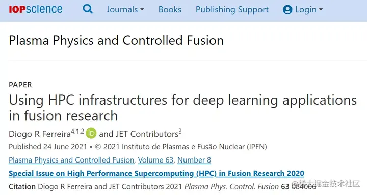 该研究于 6 月 24 日以《Using HPC infrastructures for deep learning applications in fusion research》为题发表在《Plasma Phys. Control. Fusion》杂志上。