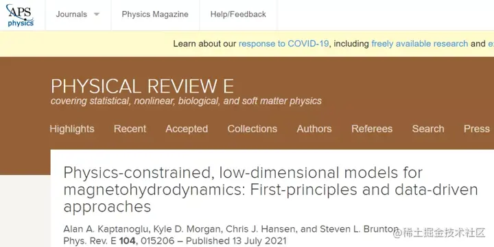 该研究以《用于磁流体动力学的受物理约束的低维模型: 第一性原理和数据驱动的方法》(Physics-constrained, low-dimensional models for magnetohydrodynamics: First-principles and data-driven approaches) 为题,于 7 月 13 日发表在《Physical Review E 》杂志上。