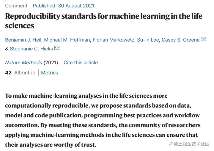 为了使生命科学中的机器学习分析在计算上更具可重复性,该团队从数据、模型和代码的公布情况、编程实践、工作流自动化程度方面提出了标准,以确保生命科学中的机器学习分析值得信赖。