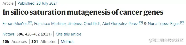 该研究以「In silico saturation mutagenesis of cancer genes」为题,于 2021 年7 月 28 日发布在《Nature》杂志。