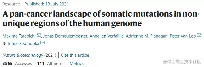 该研究以「A pan-cancer landscape of somatic mutations in non-unique regions of the human genome」为题,于 2021 年 7 月 19 日发布在《Nature Biotechnology》杂志。