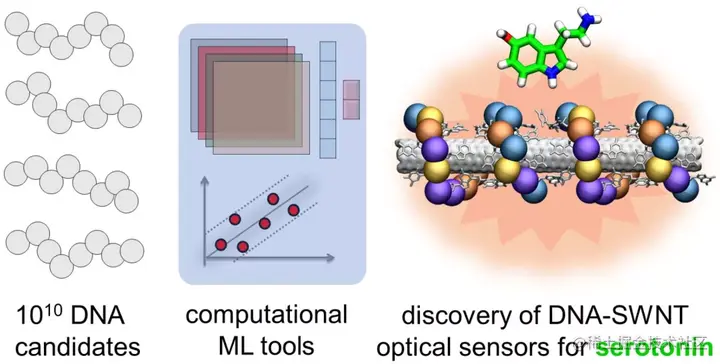 通过 ML 方法,研究人员发现了五个新的 DNA-SWNT 传感器,对血清素的荧光强度响应比以前获得的更高。总体而言,所探索的 ML 方法引入了一种重要的新工具来预测有用的 DNA 序列,可用于发现新的基于 DNA 的传感器和纳米生物技术。