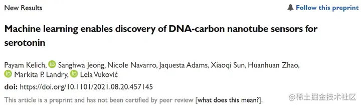 相关研究的最新研究结果以「Machine learning enables discovery of DNA-carbon nanotube sensors for serotonin」为题,于2021 年 8 月 20 日发布在 bioRxiv 平台上。