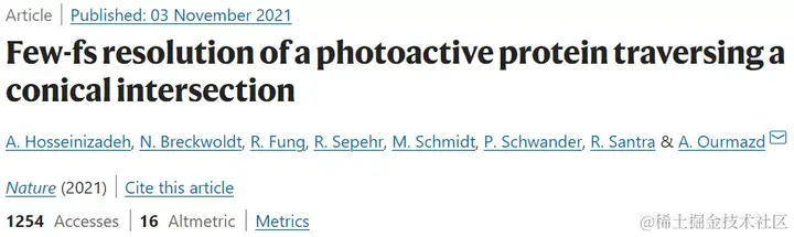 该研究以「Few-fs resolution of a photoactive protein traversing a conical intersection」为题,于 2021 年 11 月 3 日发布在《Nature》。