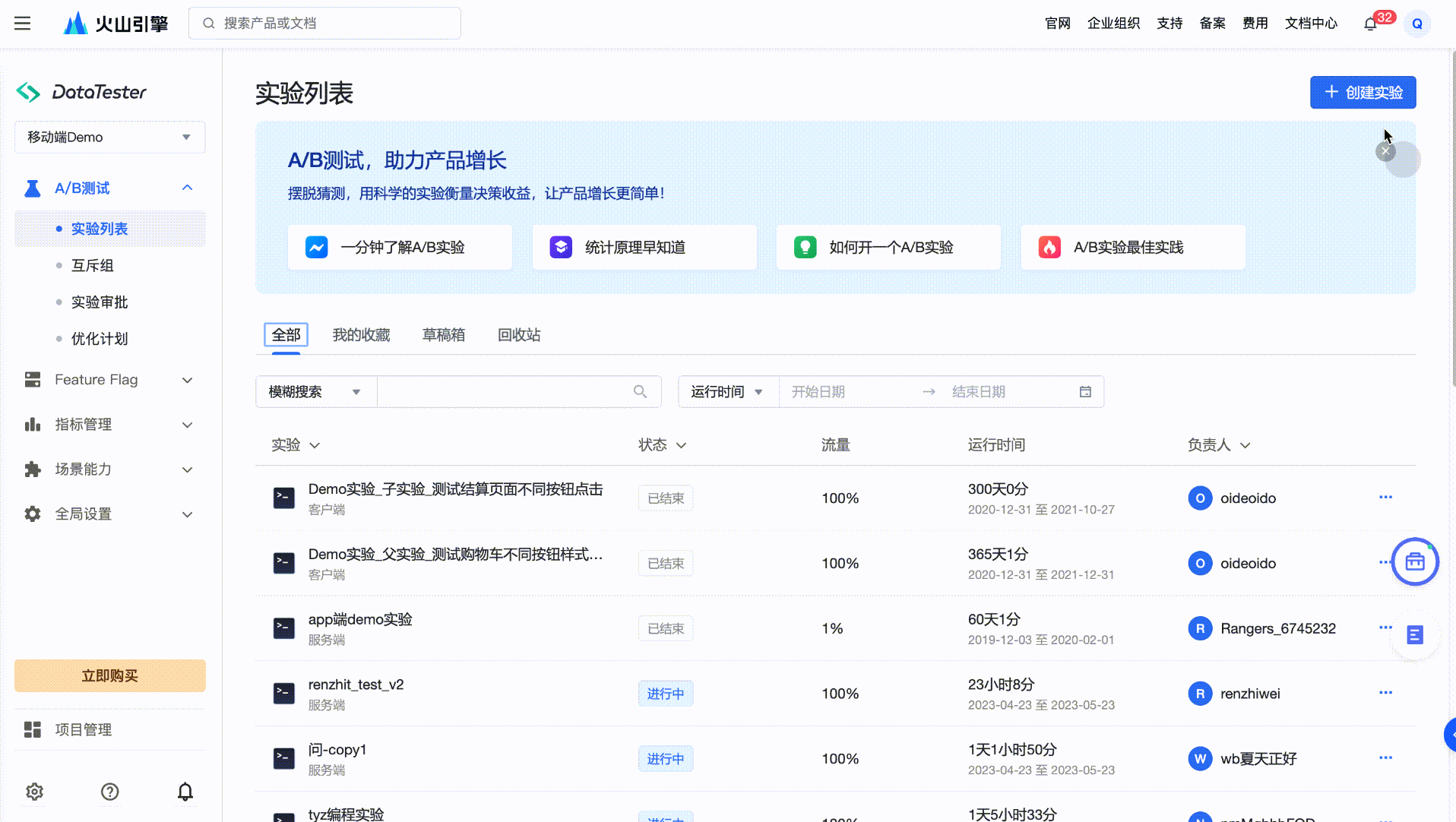 实验标签:可以给实验打上自定义或者通用标签,用于筛选、归类实验。