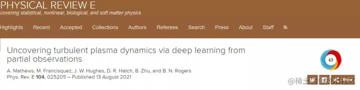 在《Physical Review E》上发表的第一篇论文「Uncovering turbulent plasma dynamics via deep learning from partial observations」中,Mathews 采用了一种新颖的深度学习技术,该技术使用人工神经网络来构建控制简化流体理论的方程的表示。该技术为先进的等离子体诊断设计和磁化等离子体湍流理论在具有挑战性的热核环境中的验证提供了范例。