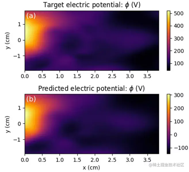 合成等离子体的未观察到的电势(上)被学习到近似于由物理信息神经网络(下)预测的加性常数。
