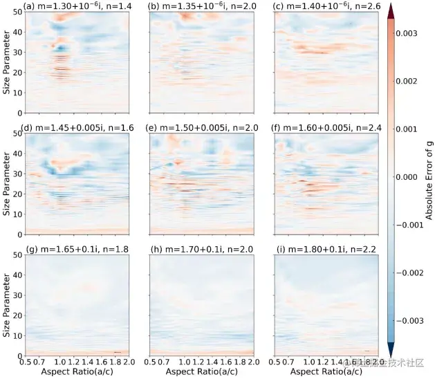 该数据库被压缩了 6810 倍,并获得了出色的精度,展示了获得准确和实时光学特性计算的潜力。真正令人印象深刻的是能够在散射角变化时捕获相位矩阵的大振荡。即使数据库中没有粒子参数,DNN 也足够强大,可以以合理的精度获得粒子的光学特性。因此,DL 方案可以再现原始数据库并预测形状和折射率参数未知的光学特性。