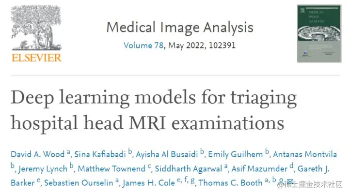 该研究以「Deep learning models for triaging hospital head MRI examinations」为题发布在《Medical Image Analysis》上。