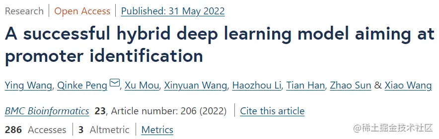 该研究以「A successful hybrid deep learning model aiming at promoter identification」为题,于 2022 年 5 月 31 日发布在《BMC Bioinformatics》。