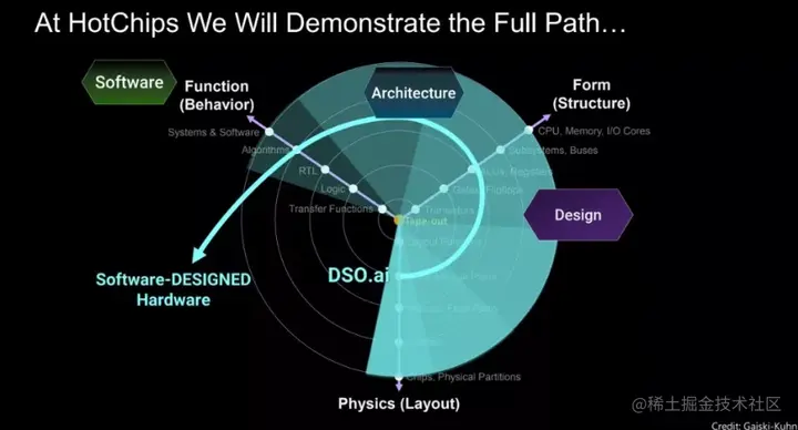 「DSO 的不同之处在于,它不适用于单个设计步骤,而是适用于整个设计流程。」它将解决针对特定应用程序或系统的所有维度的快速芯片定制,包括硬件(物理)、软件(功能)、可制造性和架构(形式)。