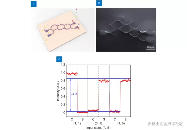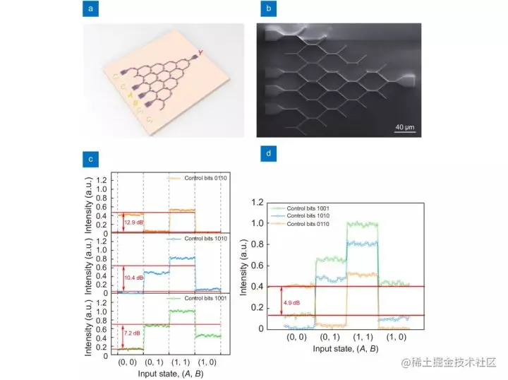 总之,研究人员通过实验证明了第一个基于硅波导的用于全光计算的物理固定 CNN。实现了设计以实现全光超越方程求解器、各种逻辑门算子和半加器,所有这些都表现出皮秒级超快运算和每比特数十飞焦量级的超低能耗。