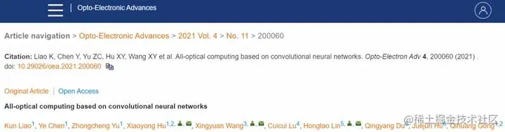 该研究以「All-optical computing based on convolutional neural networks」为题,于 11 月 25 日发表在《Opto-Electronic Advances》上。