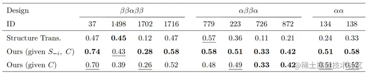 许教授团队使用 Rocklin 团队的深度突变扫描数据评估他们的模型在预测单点突变对蛋白质稳定性的影响。在上表中,研究人员观察到该模型可以提高8种从头设计的小蛋白质的稳定性预测,并且在9个测试蛋白质上优于以前文献报道的Structure Transformer。