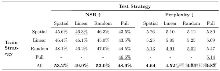 研究人员评估了五种不同的残基掩蔽技术(Spatial、Linear、Random、Full 和 All)的性能。