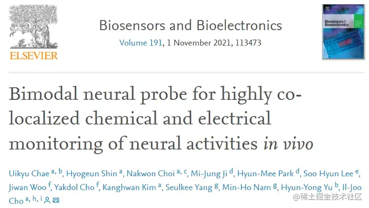 该研究以「Bimodal neural probe for highly co-localized chemical and electrical monitoring of neural activities in vivo」为题,发表在《Biosensors and Bioelectronics》(生物传感器和生物电子学)杂志上。