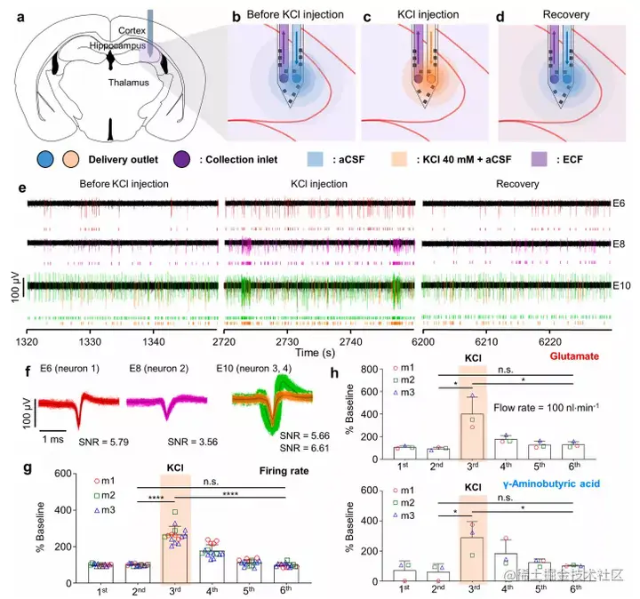 通过双模态 MEMS 神经探针在高 KCl 溶液输送的兴奋刺激过程中监测电信号和化学信号。