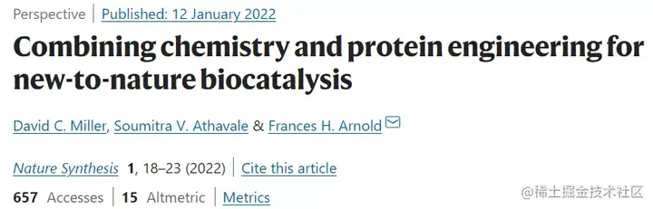 该文章以「Combining chemistry and protein engineering for new-to-nature biocatalysis」为题,于 2022 年 1 月 12 日发布在《Nature Synthesis》。