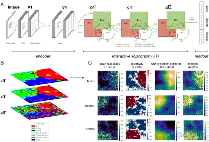 为此,研究人员开发了一种深度学习模型:交互式地形网络 (ITN),该模型具有生物大脑连接的附加特征,假设该模型可以揭示 IT 的空间组织或地形。