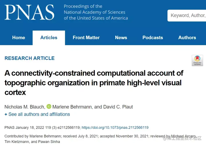 该研究以「A connectivity-constrained computational account of topographic organization in primate high-level visual cortex」为题,于 2022 年 1 月 18 日发布在《PNAS》上。