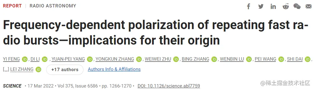 该研究以「Frequency Dependent Polarizationof Repeating Fast Radio Bursts - Implications for Their Origin」为题,于 3 月 18 日发表在《Science》杂志。