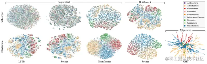 图示:β-内酰胺酶蛋白质家族的潜在嵌入,由分类学在门级进行颜色编码。(来源:论文)