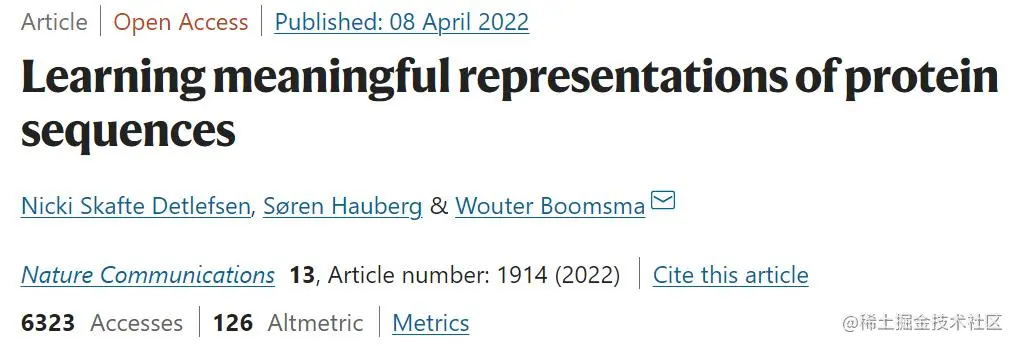 该研究以「Learning meaningful representations of protein sequences」为题,于 2022 年 4 月 8 日发布在《Nature Communications》。