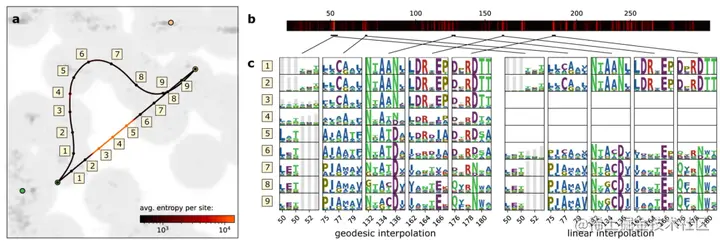 在这项研究中,研究人员仅对变分自编码器的潜在空间进行几何分析,由于其从固定维度潜在空间到固定维度输出空间的平滑映射,因此非常适合。由于他们无法从顺序语言模型中的聚合全局表示进行解码,这一事实阻碍了超出单个蛋白质家族的扩展。