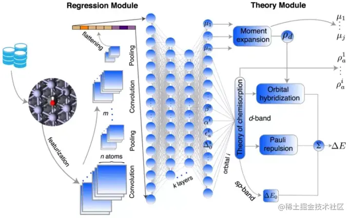 弗吉尼亚理工学院的研究人员开发了一种融合理论的神经网络(TinNet)方法,该方法将深度学习算法与完善的 d 带化学吸附理论相结合,用于过渡金属表面的反应性预测。