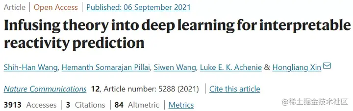 该研究以「Infusing theory into deep learning for interpretable reactivity prediction」为题,于 2021 年 9 月 6 日发布在《Nature Communications》。