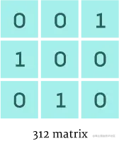 Brualdi 和 Cao 的问题涉及一组特定的 0-1 矩阵,他们称之为 312 模式避免(312-pattern avoiding),参考 3 x 3,「312 矩阵」,它表示混合三维向量的元素,使(a ,b,c) 变为 (c,a,b)。0-1 矩阵是 312 模式,如果无法删除它的一些行和列并最终得到 312 矩阵,则可以避免。