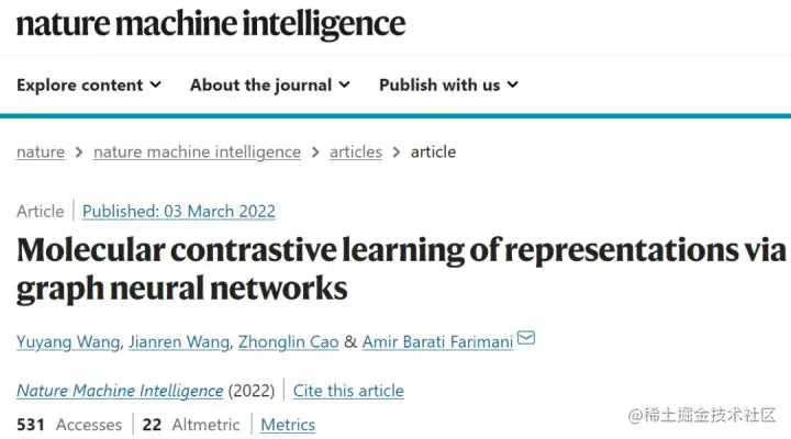 该研究结果以「Molecular contrastive learning of representations via graph neural networks」为题,于 2022 年 3 月 3 日发表在《Nature Machine Intelligence》上。