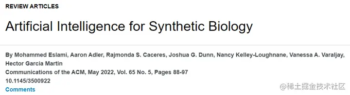 该综述以「Artificial Intelligence for Synthetic Biology」为题,于 2022 年 5 月发布在《Communications of the ACM》,以下为文章内容全译。