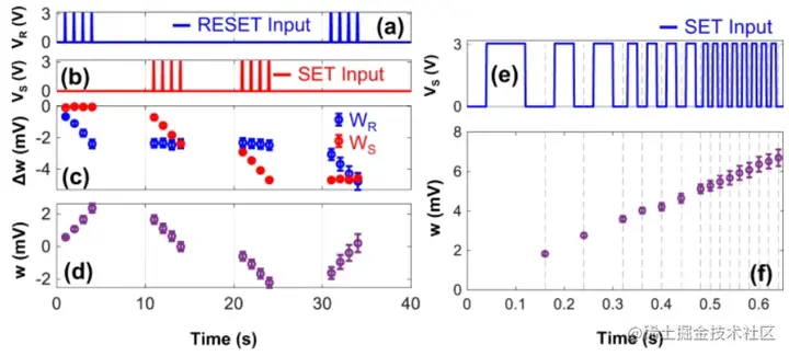 在前人的研究中,已经提出了几种用于实现模拟突触的多级非易失性存储器。其中包括两个终端记忆器件,如电阻随机存取存储器(RRAM)、磁随机存取存储器(MRAM)、相变存储器(PCM)、自旋转移转矩磁RAM(STT-MRAM)、导电桥RAM或三个终端器件,如浮栅晶体管、铁电场效应晶体管基存储器(FeFET),电荷阱存储器和电化学RAM(ECRAM)。