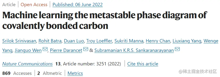 该研究以「Machine learning the metastable phase diagram of covalently bonded carbon」为题,于 2022 年 6 月 6 日发布在《Nature Communications》。