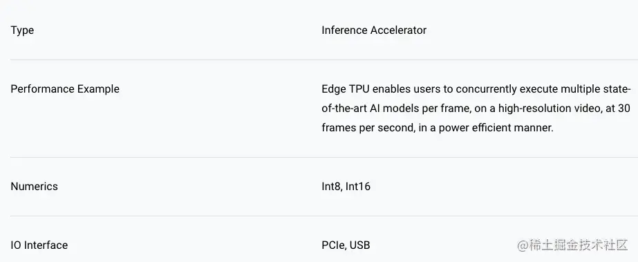 Edge TPU是谷歌的专用ASIC芯片,专为在边缘运行TensorFlow Lite ML模型而设计。在设计Edge TPU时,我们非常注重在很小的占用空间内优化“每瓦性能”和“每美元性能”。