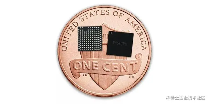 Edge TPU芯片的尺寸,与一美分硬币对比