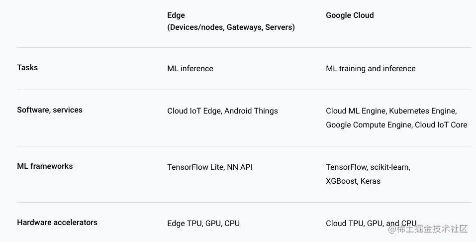 - 软件和服务方面,Edge TPU适用于Cloud IoT Edge和Android Things;Cloud TPU的可用软件包括Cloud ML Engine,Kubernetes Engine,Google Compute Engine,以及Cloud IoT Core