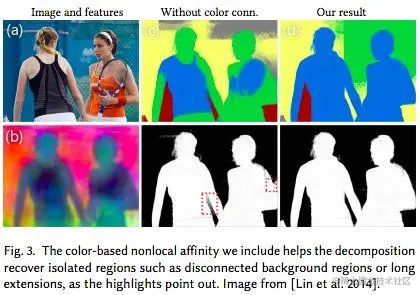 这种亲和性(affinity)基本上确保了具有非常相似的颜色的区域在复杂场景结构中保持关联,其效果如下图所示。