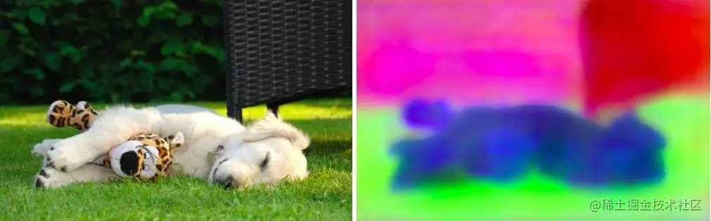 然后,神经网络检测到“soft transitions”,例如狗狗的毛发和草。以前这个过程必须手动去做。