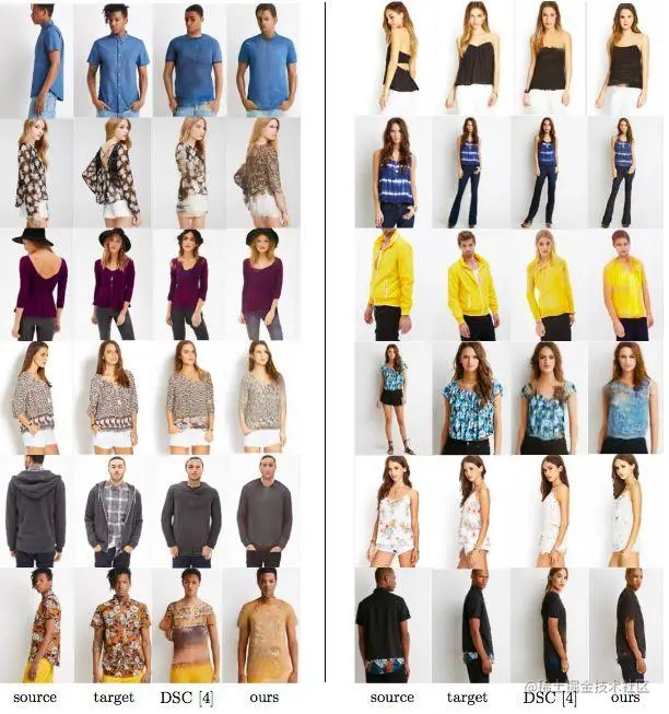 图 4:与最先进的 Deformable GAN (DSC) 方法的定性比较。