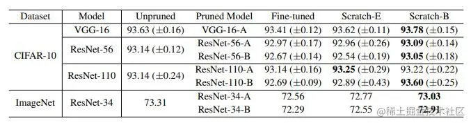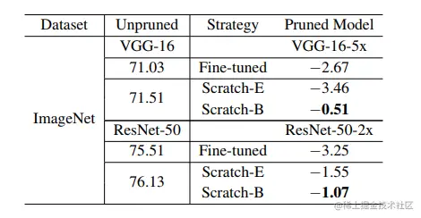 在我们的实验中,我们使用Scratch-E表示训练相同epoch的小剪枝模型,用Scratch-B表示训练相同数量的计算预算。